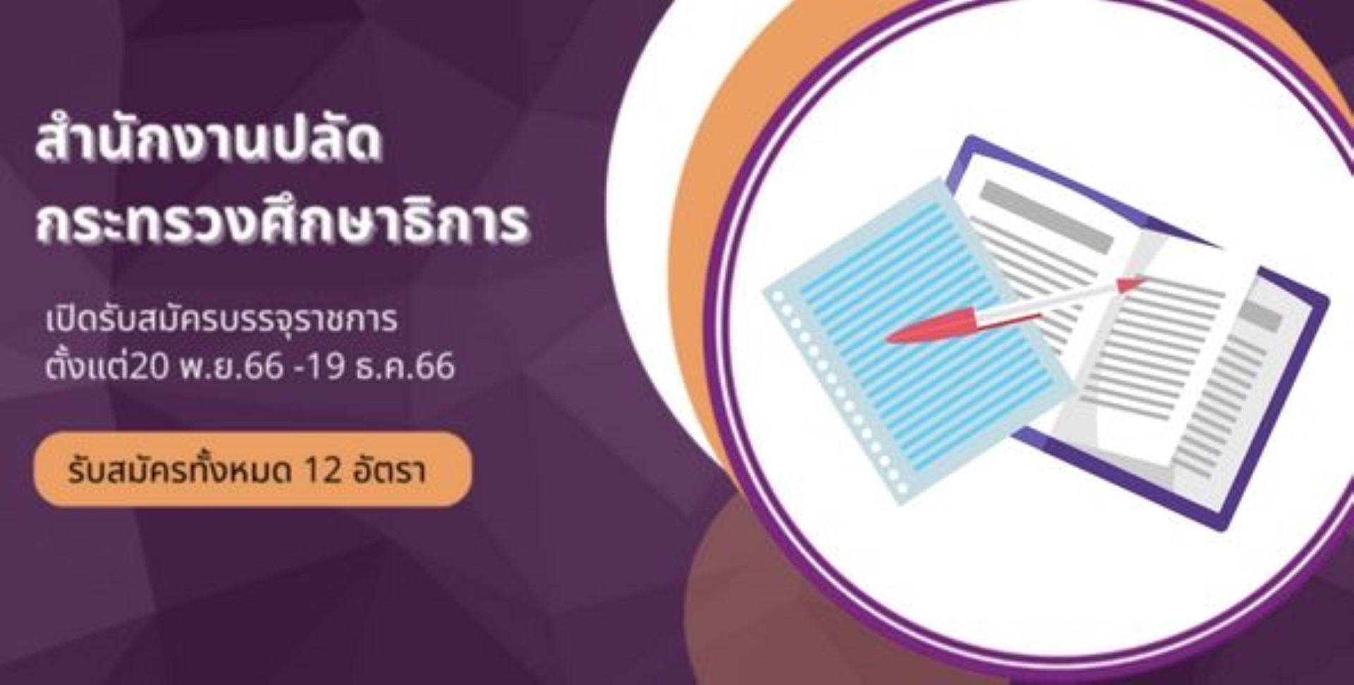 สำนักงานปลัดกระทรวงศึกษาธิการ เปิดรับสมัครสอบบรรจุเข้ารับราชการ 12 อัตรา รับสมัครทางอินเทอร์เน็ต ตั้งแต่วันที่ 27 พฤศจิกายน - 20 ธันวาคม 2566 ประกาศสำนักงานปลัดกระทรวงศึกษาธิการ เรื่อง รับสมัครสอบแข่งขันเพื่อบรรจุและแต่งตั้งบุคคลเข้ารับราชการในสังกัด ของสำนักงาน ก.ค.ศ. สำนักงานปลัดกระทรวงศึกษาธิการ ตำแหน่งที่เปิดรับสมัคร 1. ตำแหน่ง นิติกรปฏิบัติการ จำนวน 9 อัตรา เงินเดือน 15,000 - 16,500 บาท คุณสมบัติเฉพาะตำแหน่ง 1.ได้รับปริญญาตรีหรือคุณวุฒิอย่างอื่นที่เทียบได้ในระดับเดียวกัน ในสาขาวิชานิติศาสตร์ 2.ได้รับปริญญาโทหรือคุณวุฒิอย่างอื่นที่เทียบได้ในระดับเดียวกัน ในสาขาวิชานิติศาสตร์ 3.ได้รับปริญญาเอกหรือคุณวุฒิอย่างอื่นที่เทียบได้ในระดับเดียวกัน ในสาขาวิชานิติศาสตร์ 4.ได้รับปริญญาหรือคุณวุฒิอย่างอื่นที่ ก.พ. กำหนดว่าใช้เป็นคุณสมบัติเฉพาะสำหรับตำแหน่งนี้ได้ เงินเดือน 15,000 - 16,500 บาท 2. ตำแหน่ง นักทรัพยากรบุคคลปฏิบัติการ จำนวน 2 อัตรา เงินเดือน 15,000 - 16,500 บาท คุณสมบัติเฉพาะตำแหน่ง 1.ได้รับปริญญาตรีหรือคุณวุฒิอย่างอื่นที่เทียบได้ในระดับเดียวกันในทุกสาขาวิชา 2.ได้รับปริญญาโทหรือคุณวุฒิอย่างอื่นที่เทียบได้ในระดับเดียวกันในทุกสาขาวิชา 3.ได้รับปริญญาเอกหรือคุณวุฒิอย่างอื่นที่เทียบได้ในระดับเดียวกันในทุกสาขาวิชา 4.ได้รับปริญญาหรือคุณวุฒิอย่างอื่นที่ ก.ค.ศ. กำหนดว่าใช้เป็นคุณสมบัติเฉพาะสำหรับตำแหน่งนี้ได้ 3. ตำแหน่ง นักวิชาการคอมพิวเตอร์ปฏิบัติการ จำนวน 1 อัตรา เงินเดือน 15,000 - 16,500 บาท คุณสมบัติเฉพาะตำแหน่ง 1.ได้รับปริญญาตรีหรือคุณวุฒิอย่างอื่นที่เทียบได้ในระดับเดียวกัน สาขาวิชาหนึ่งทางคอมพิวเตอร์ 2.ได้รับปริญญาโทหรือคุณวุฒิอย่างอื่นที่เทียบได้ในระดับเดียวกัน สาขาวิชาหนึ่งทางคอมพิวเตอร์ 3.ได้รับปริญญาเอกหรือคุณวุฒิอย่างอื่นที่เทียบได้ในระดับเดียวกัน สาขาวิชาหนึ่งทางคอมพิวเตอร์ 4.ได้รับปริญญาหรือคุณวุฒิอย่างอื่นที่ ก.พ. กำหนดว่าใช้เป็นคุณสมบัติเฉพาะสำหรับตำแหน่งนี้ได้ หากหลักฐานการศึกษามิได้ระบุสาขาวิชาเอกที่ศึกษาไว้หรือระบุไว้แตกต่างจากประกาศรับสมัคร ให้ถือจำนวนหน่วยกิตของวิชาที่ศึกษาเป็นเกณฑ์ในการพิจารณาโดยให้ถือหลักว่าต้องศึกษาเนื้อหาวิชาทางคอมพิวเตอร์ ไม่น้อยกว่า 30 หน่วยกิต *** ผู้สมัครสอบต้องเป็นผู้สอบผ่านการสอบวัดความรู้ความสามารถทั่วไป (ภาค ก) ในระดับปริญญาตรี หรือสูงกว่า ของสำนักงาน ก.พ. การรับสมัคร ผู้ประสงค์จะสมัคร สามารถสมัครได้ทางอินเทอร์เน็ตตั้งแต่วันที่ 27 พฤศจิกายน 2566 ถึงวันที่ 20 ธันวาคม 2566 ตลอด 24 ช